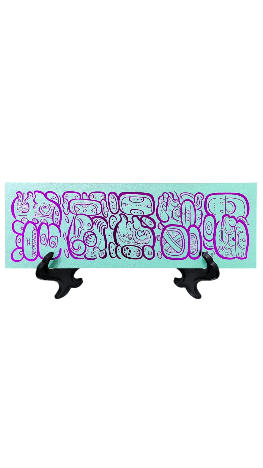 Separador de libros, con la impresión de texto en escritura Maya menta con morado