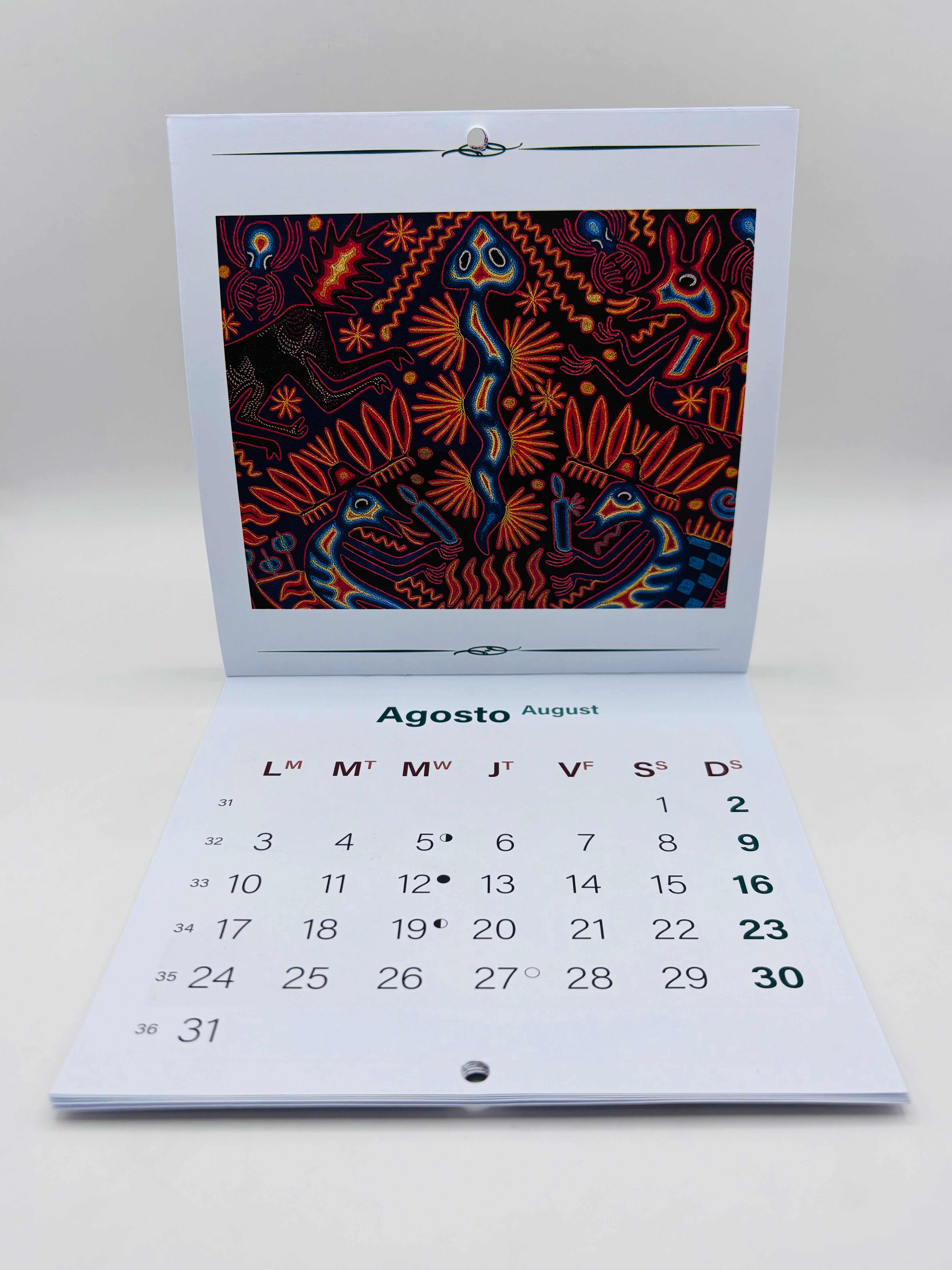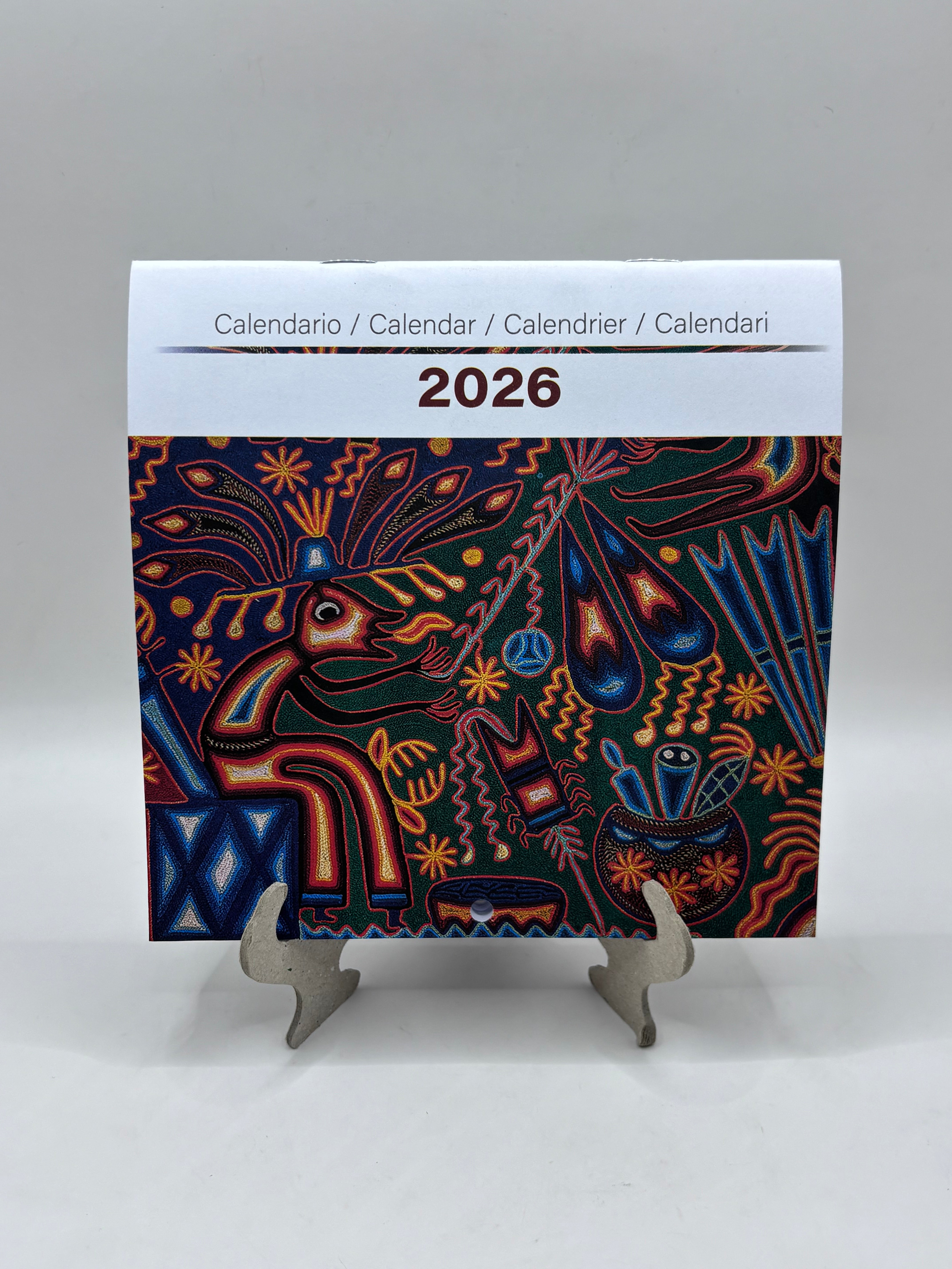 Calendario con representaciones de Arte Huichol