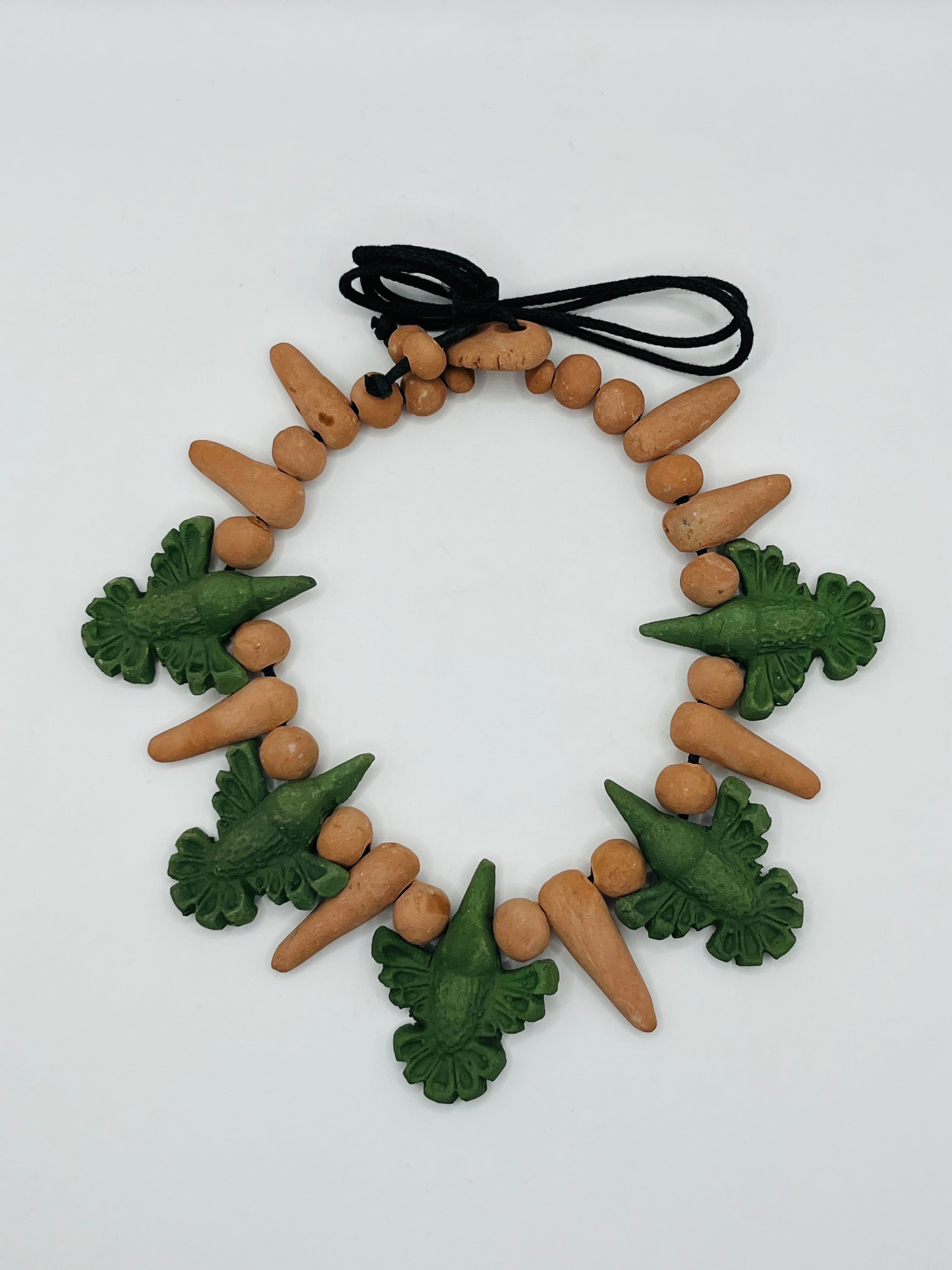 Collar de barro Colibri verde detallado con picos