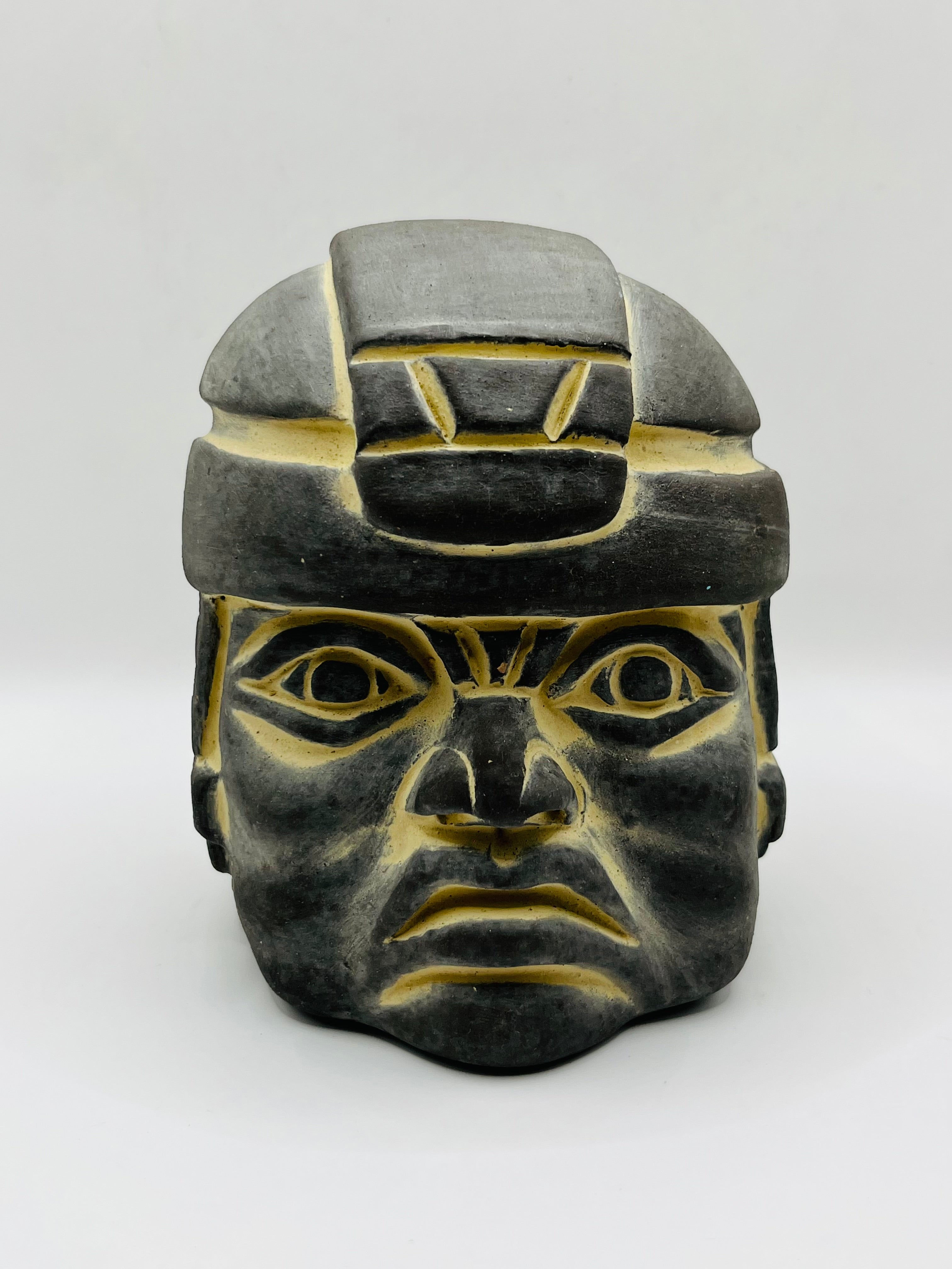 Réplica de barro, Cabeza Olmeca negra grande (2)