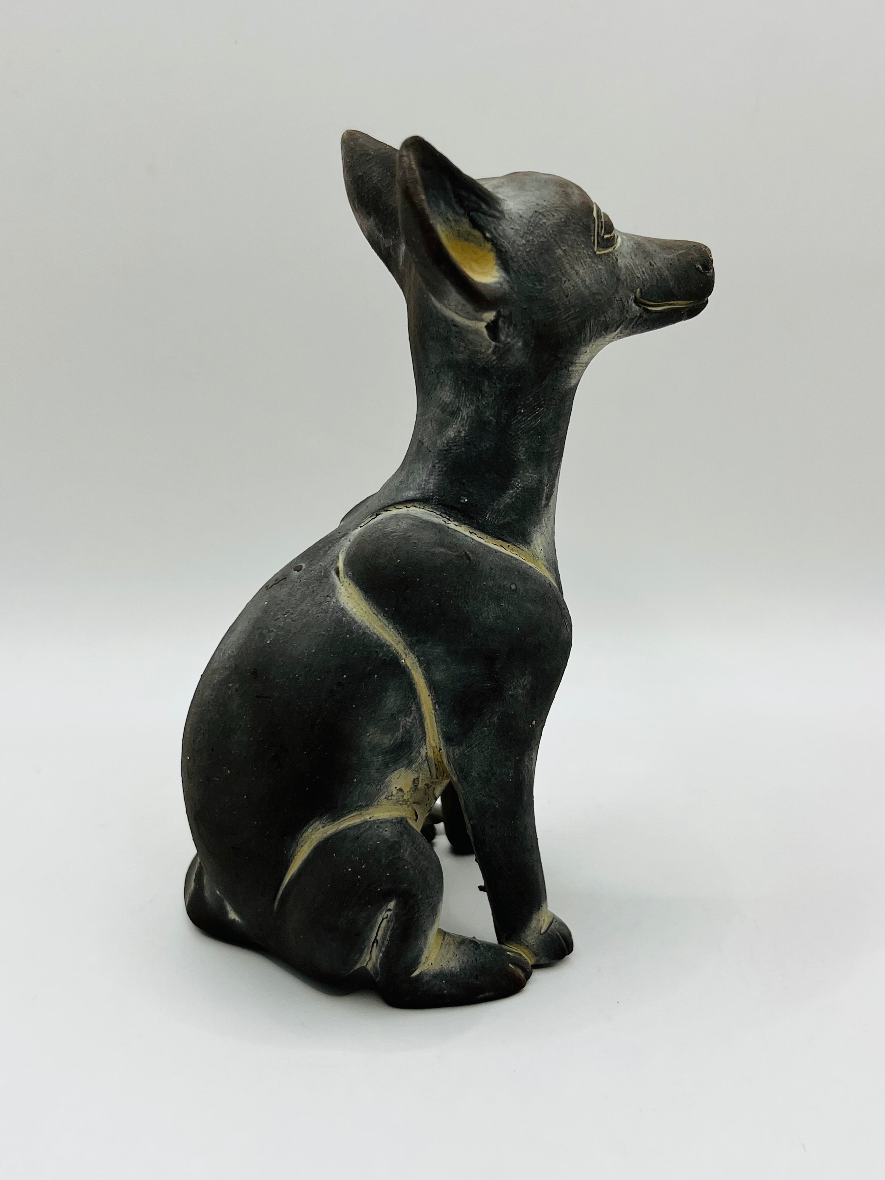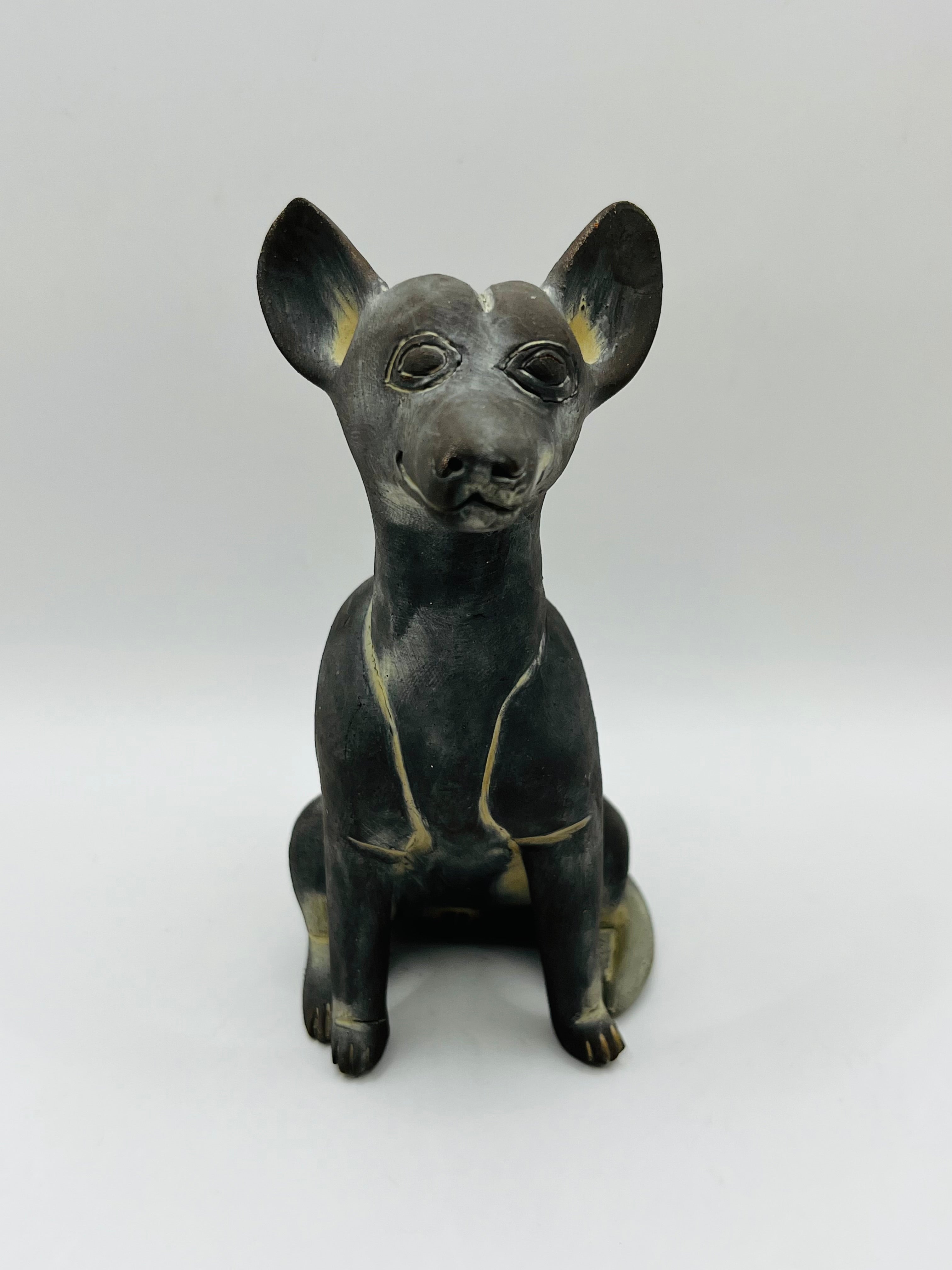 Réplica de barro, Xolo chico estilizado sentado viendo al frente negro