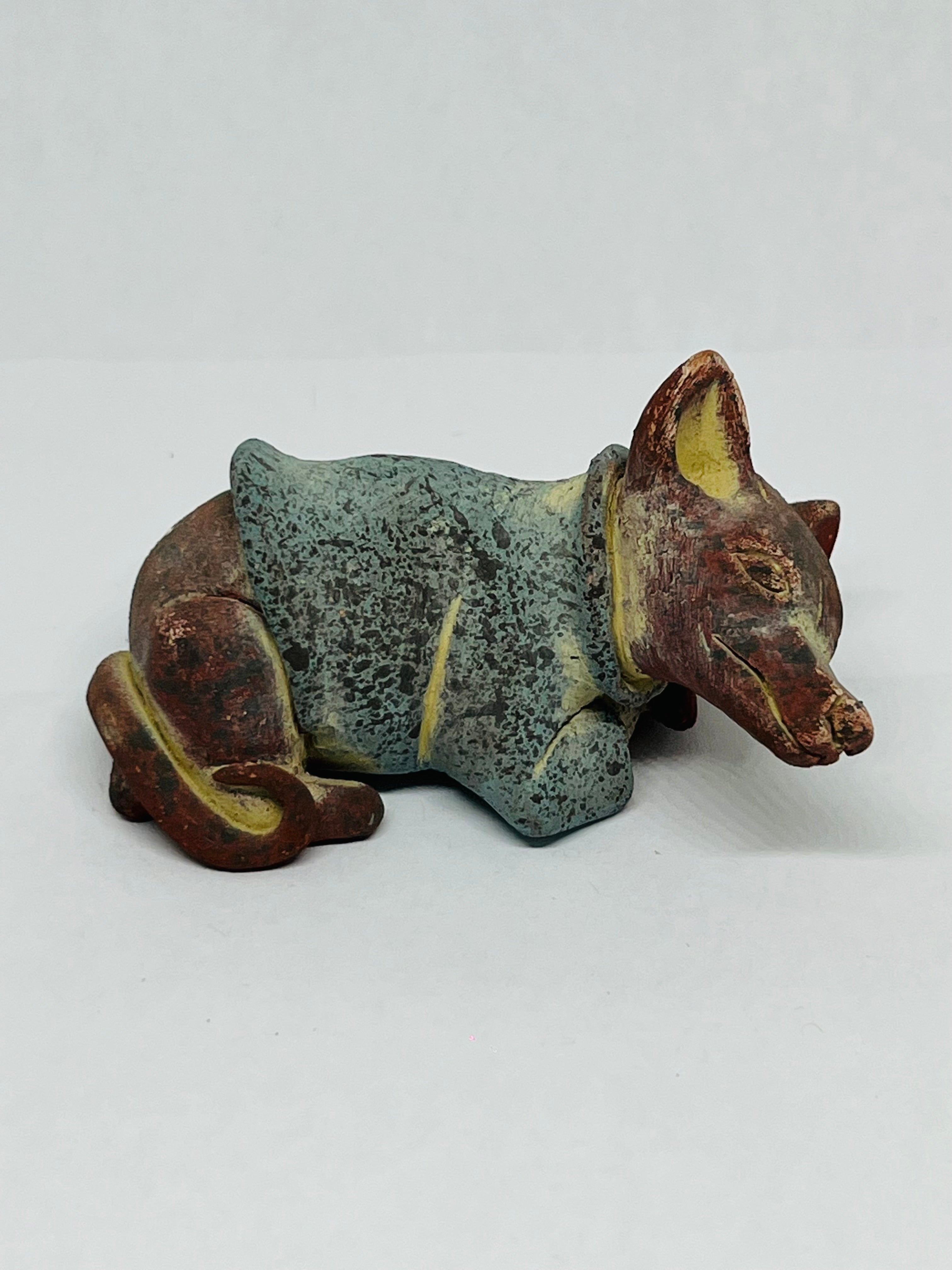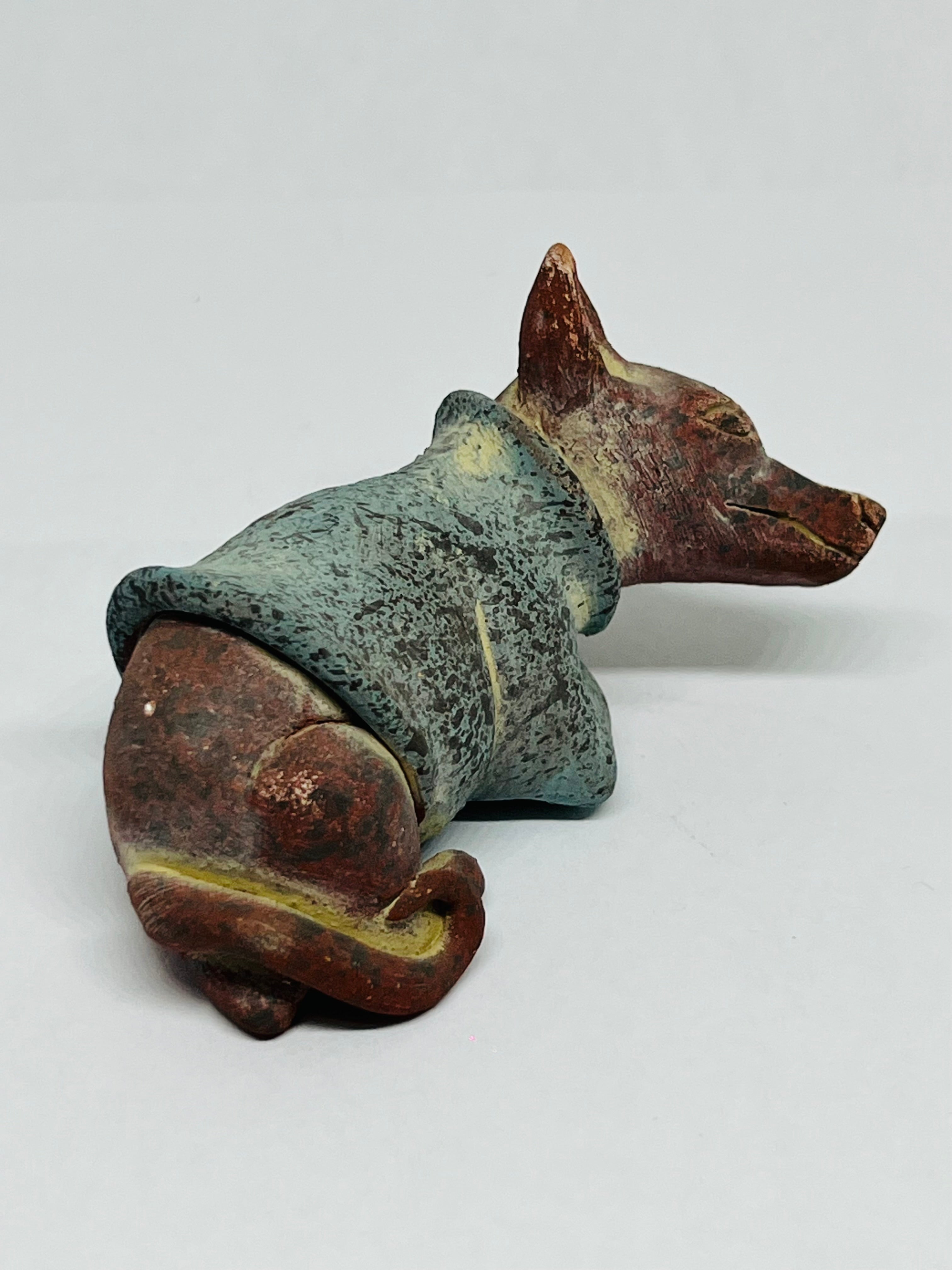 Réplica de barro, Xolo mini echado suéter azul pata metida