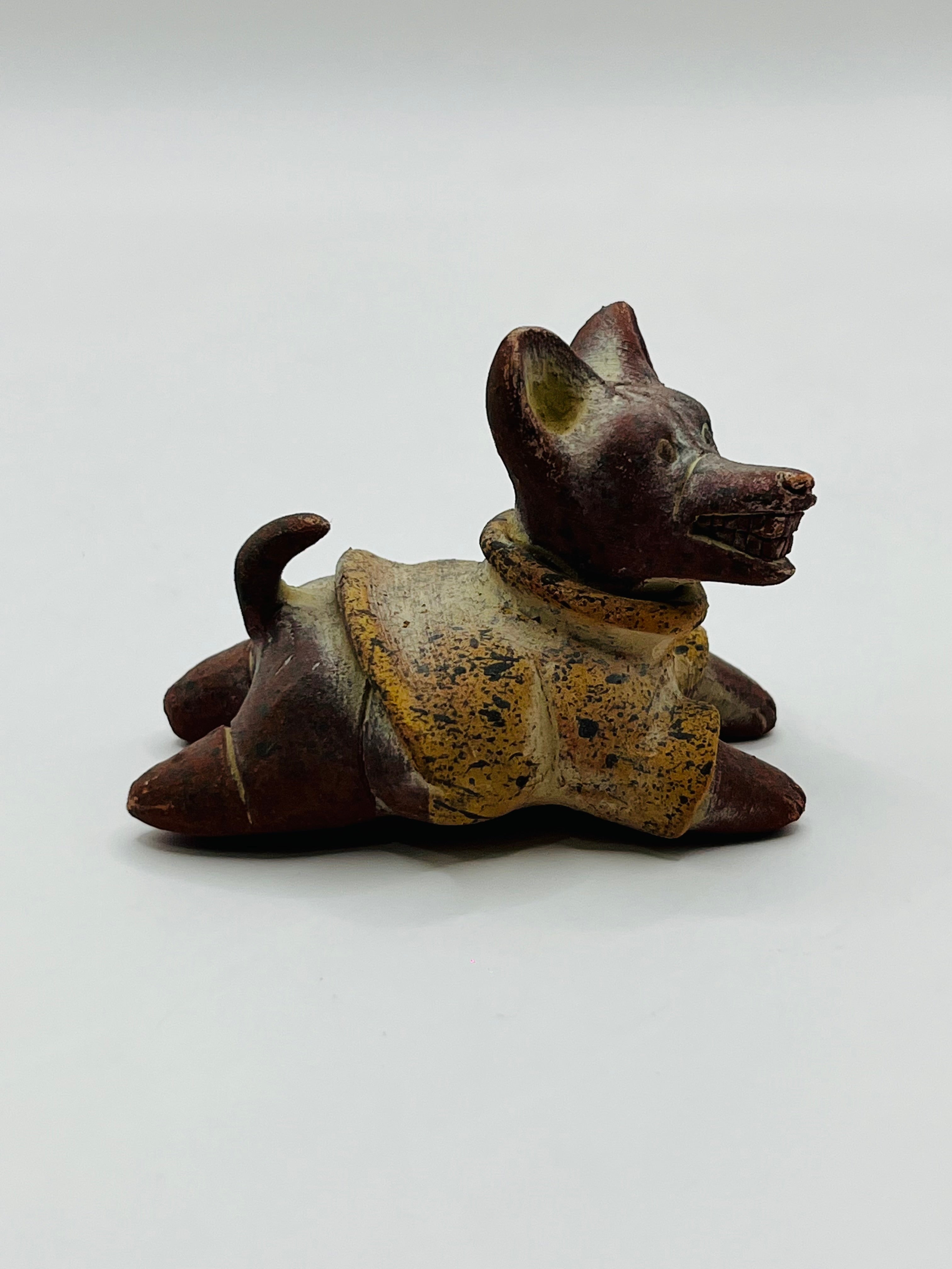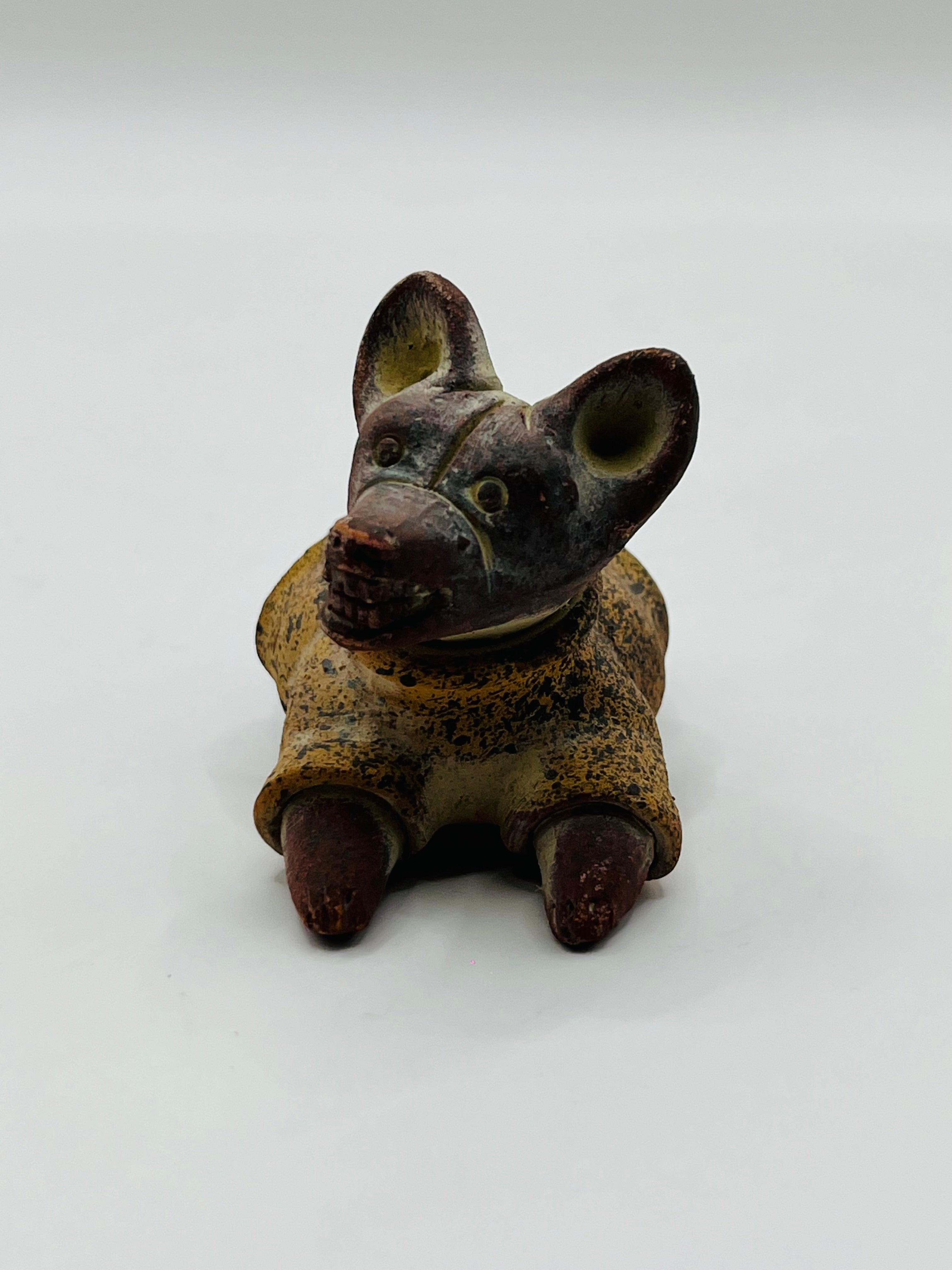 Réplica de barro, Xolo mini estirado con suéter color naranja viendo lado derecho