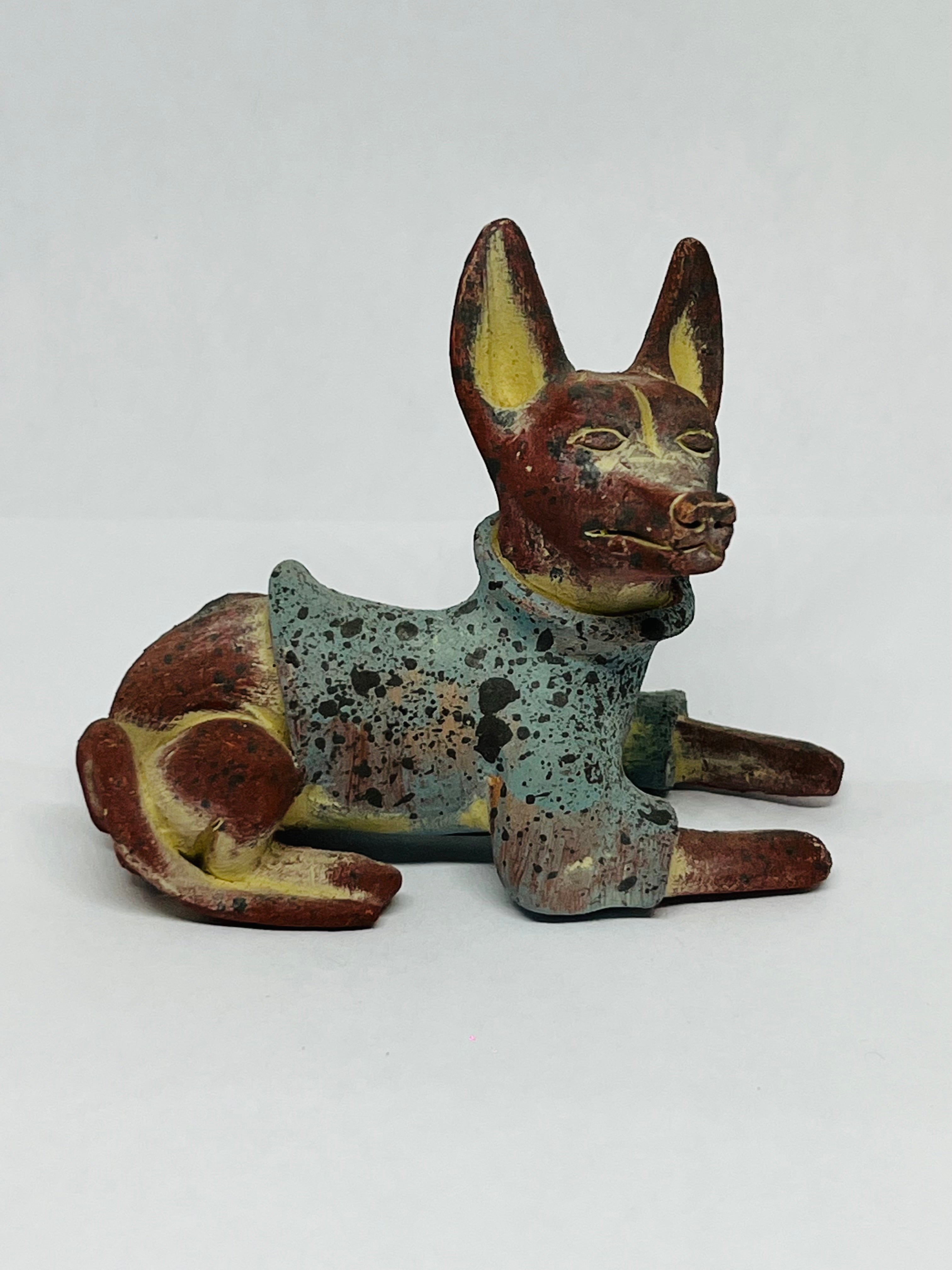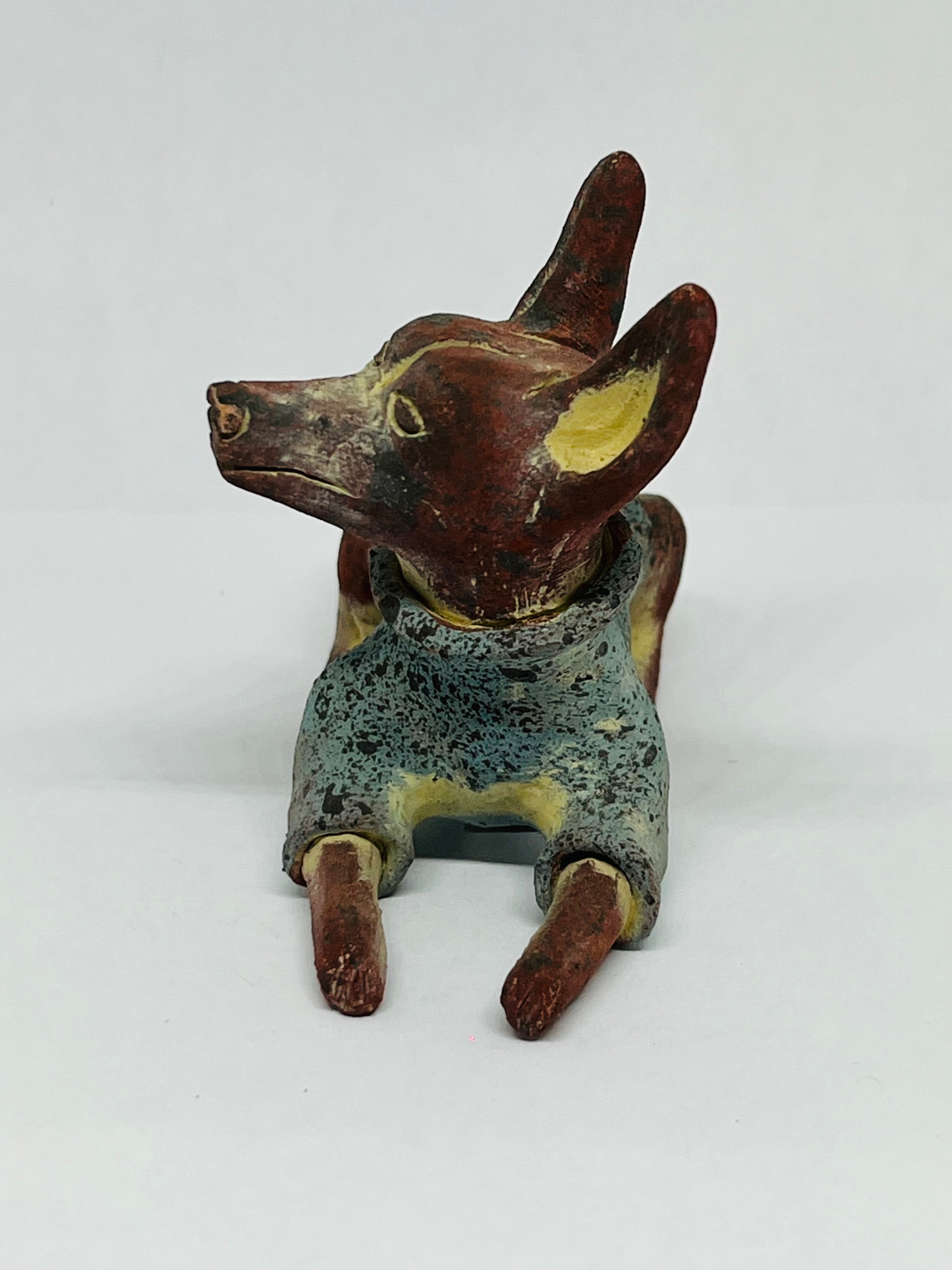 Réplica de barro, Xolo estilizado mini recostado viendo lado derecho suéter azul