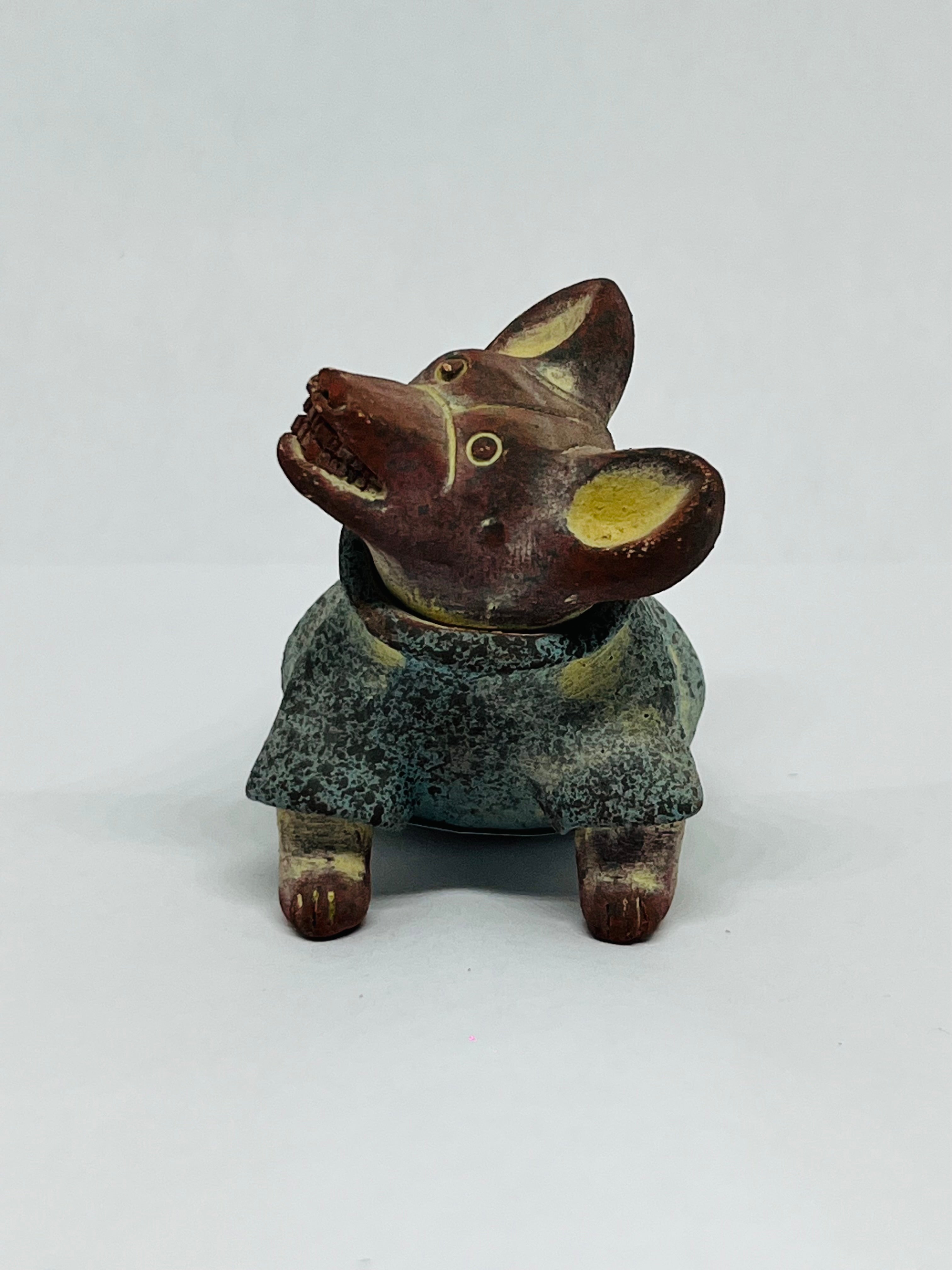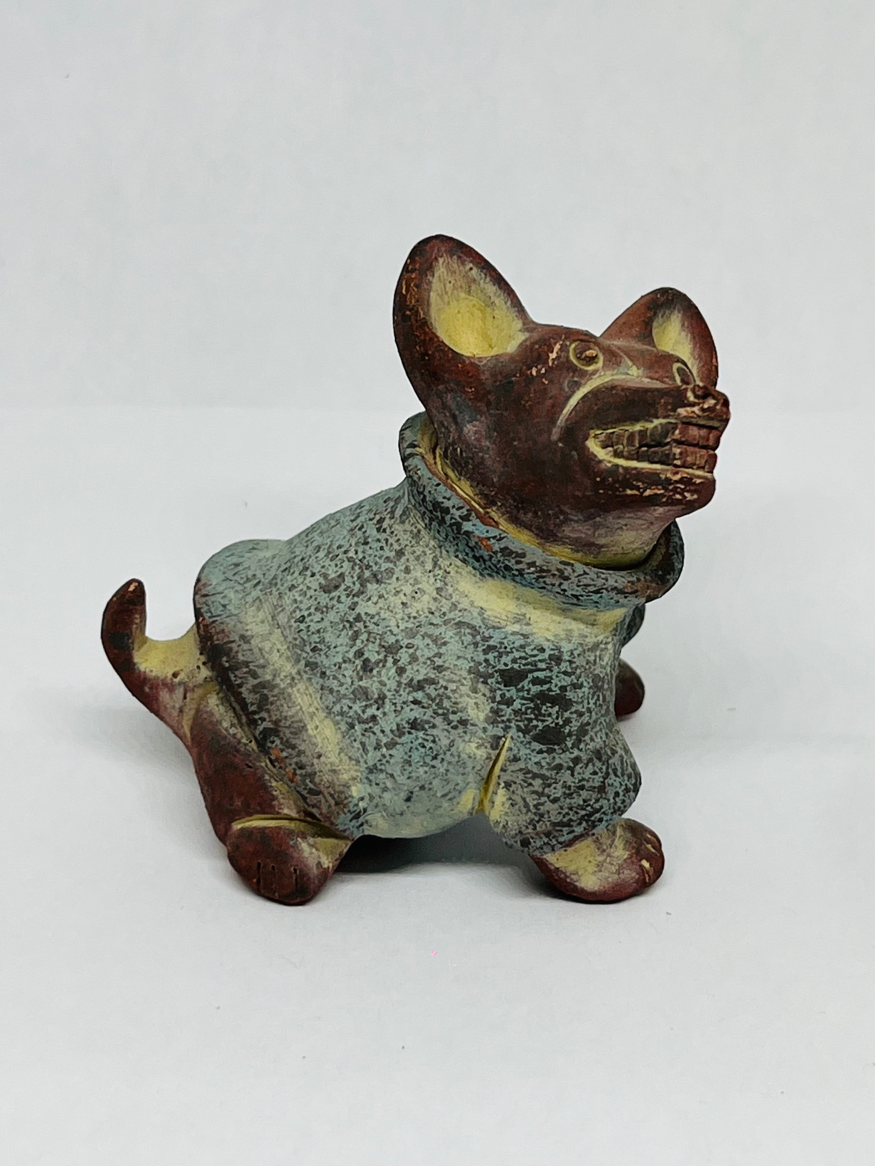 Réplica de barro, Xolo mini sentado suéter azul claro viendo lado derecho