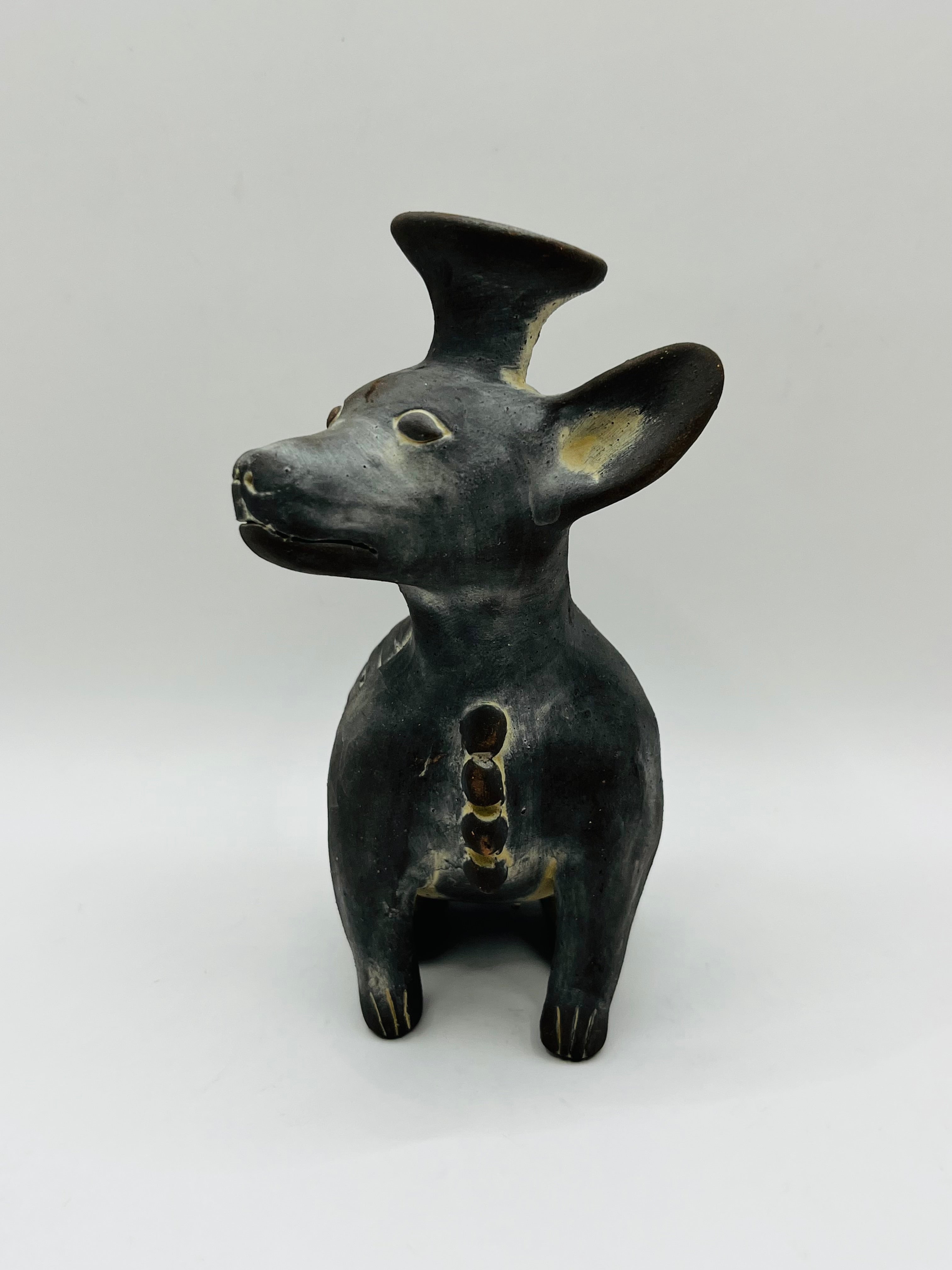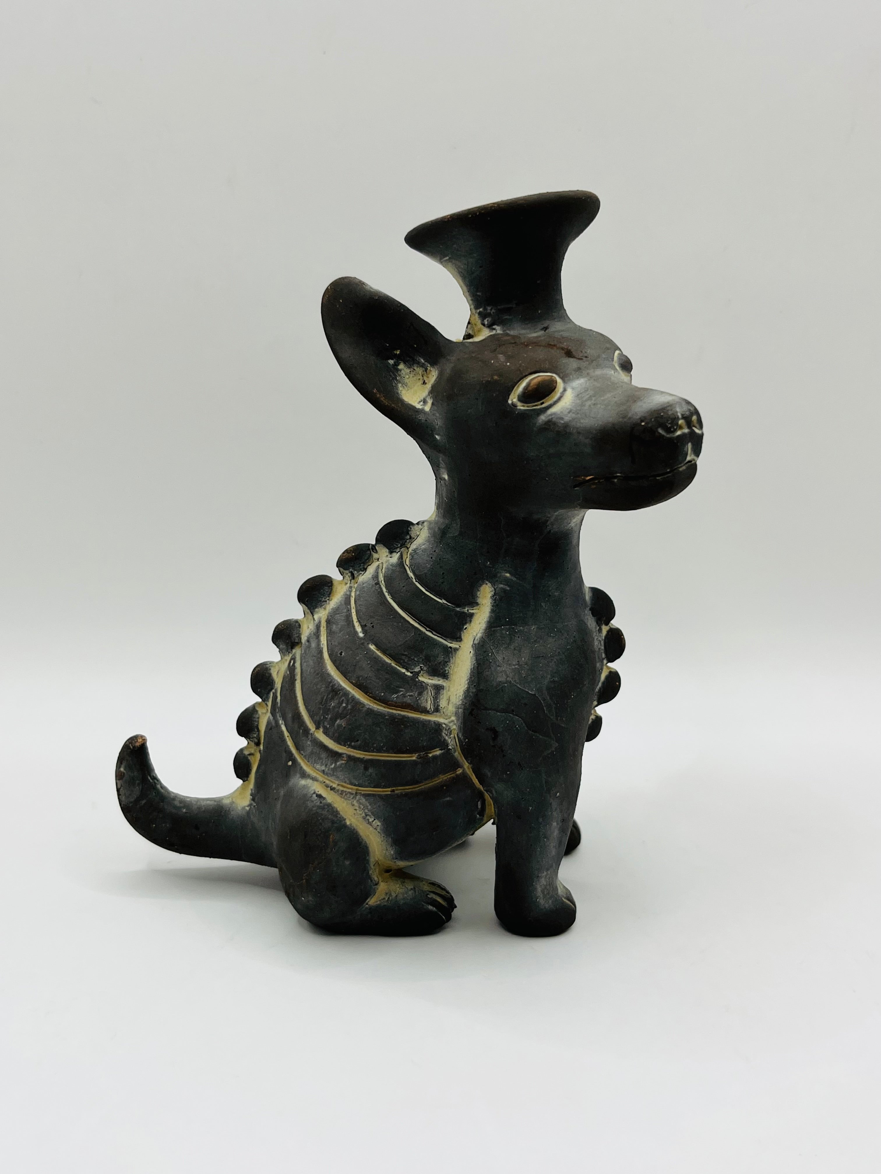 Réplica de barro, Xolo negro chico huesitos con urna viendo lado derecho