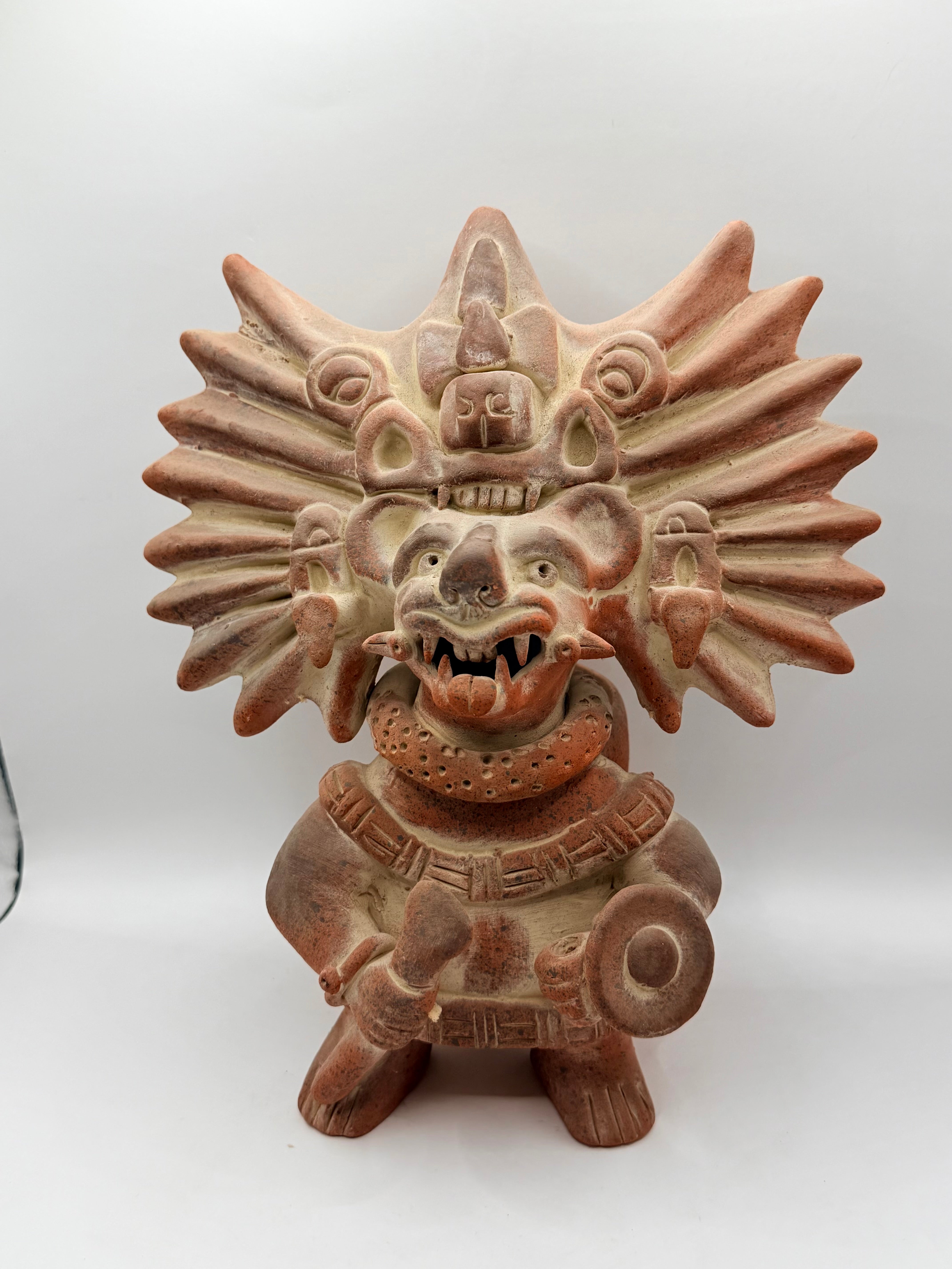Réplica de barro, Brasero Dios Murciélago de Monte Alban color rojo