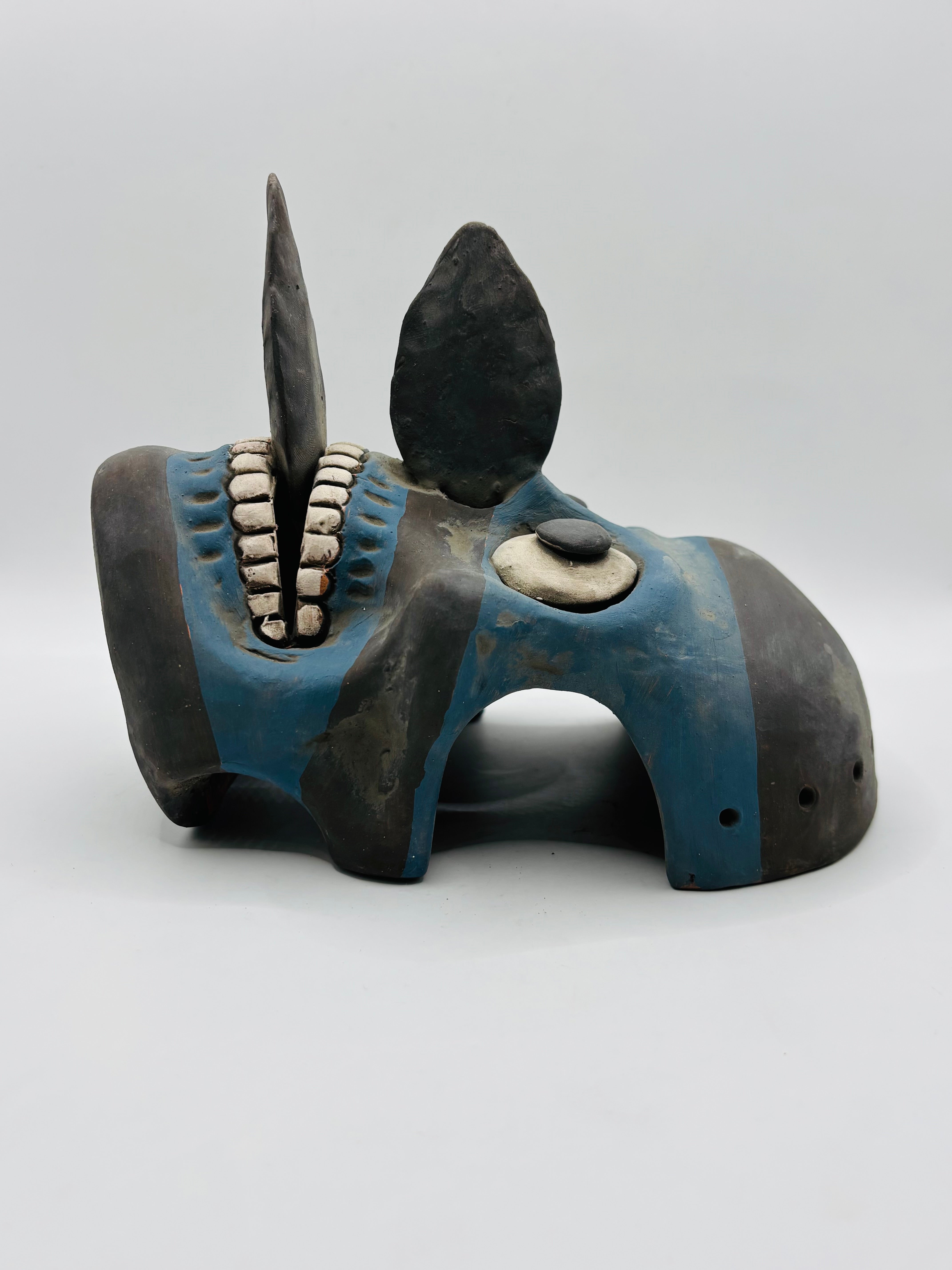 Replica de barro, Mascara de tezcatlipoca azul con negro