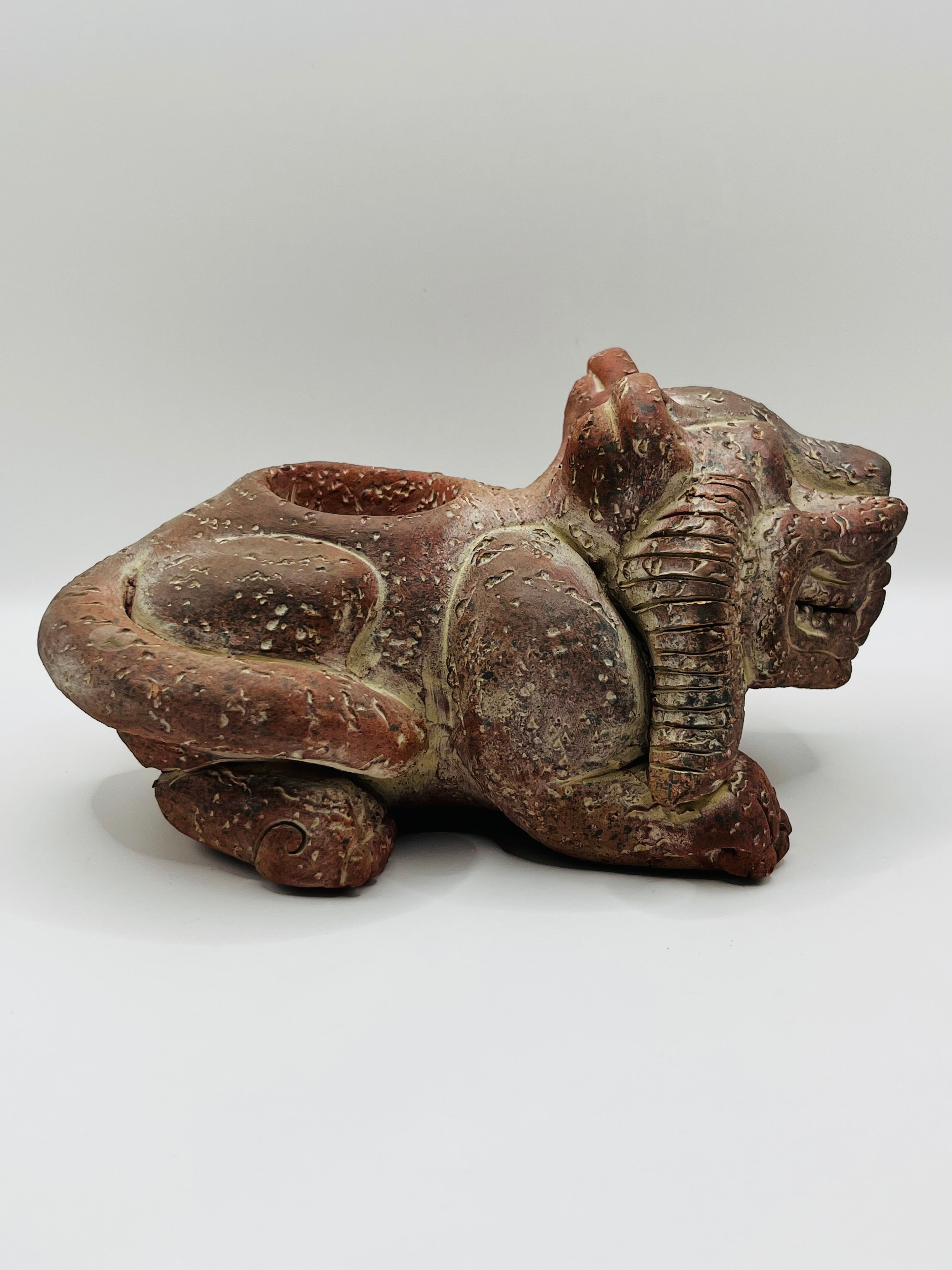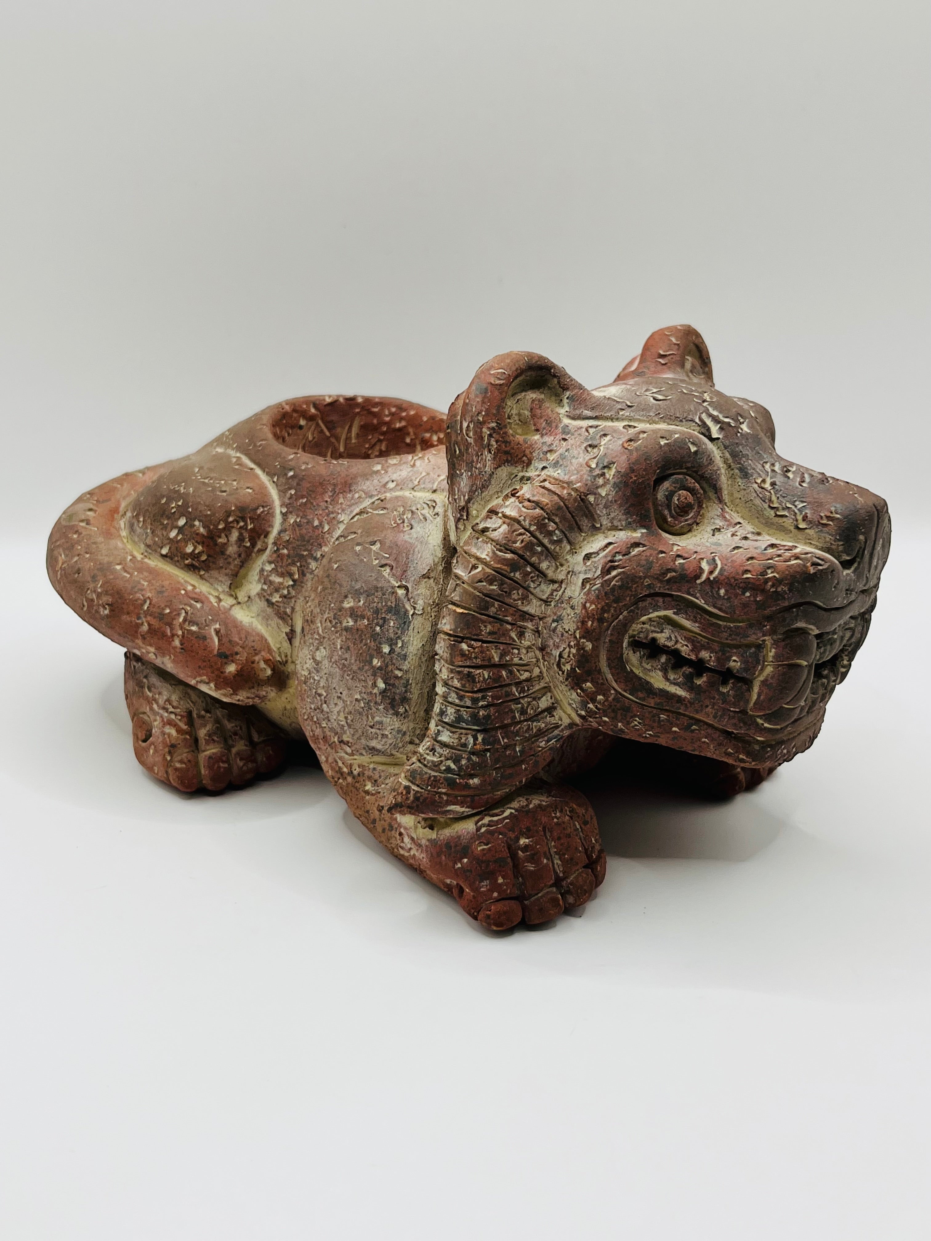 Réplica de barro Ocelotlcuauhxicalli rojo mediano